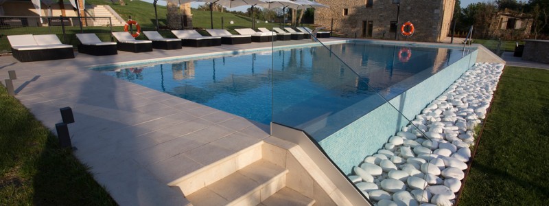 swimming pool and the Pyrenees mountains.